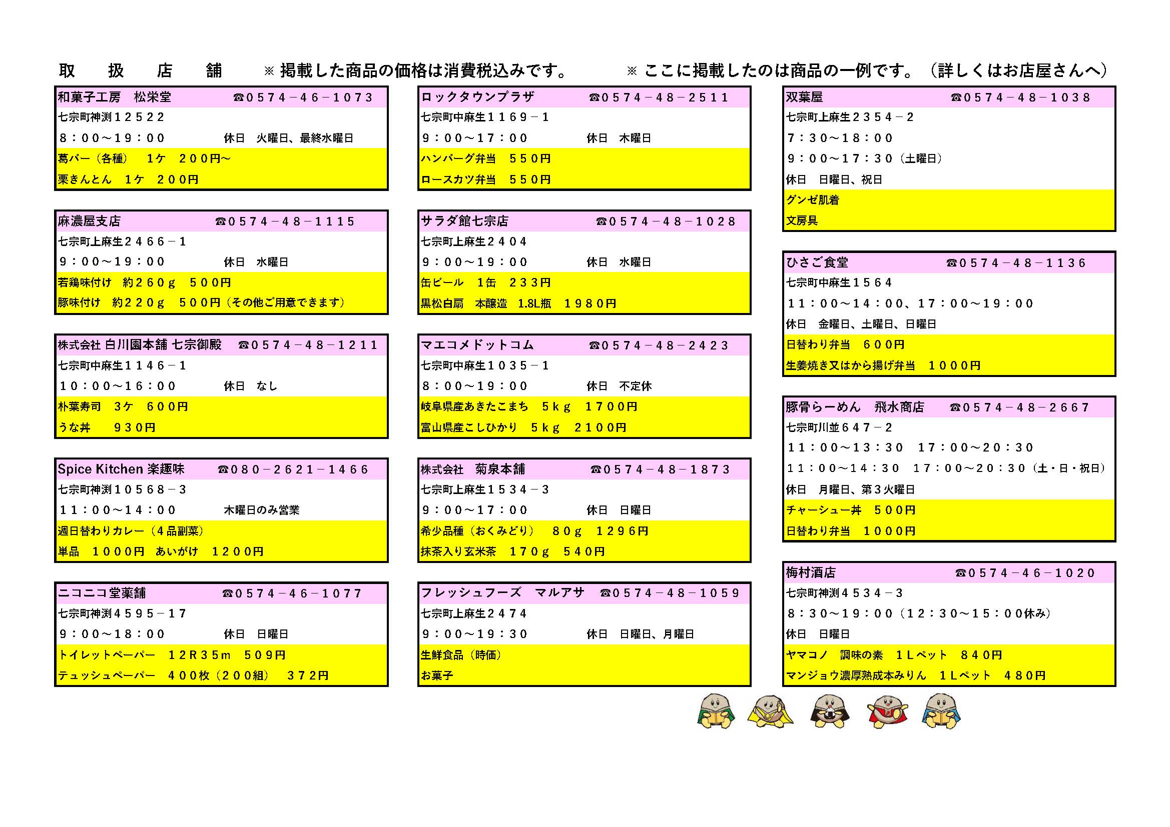 先日、七宗町が配布しました「地域振興券」を、より多くの方に利用していただくために、七宗町社会福祉協議会では、商品・弁当等をお店屋さんに取りに行けない方や宅配を行っていないお店屋さんに代わって配達します。期限は令和4年11月30日までです。